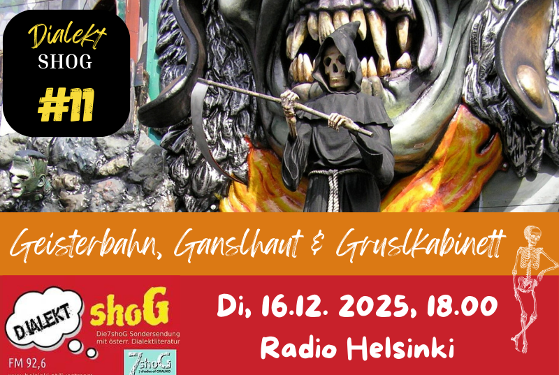 Im Mittelpunkt unserer 11. Dialekt-Sondersendung steht wieder eine neue Ausgabe der Dialekt-Literaturzeitschrift MORGENSCHTEAN –  und diese trägt, wie auch unsere Sendung, den Titel: „Geisterbahn, Ganslhaut und Gruslkabinett – vom alltäglichen und außergewöhnlichen Horror“.