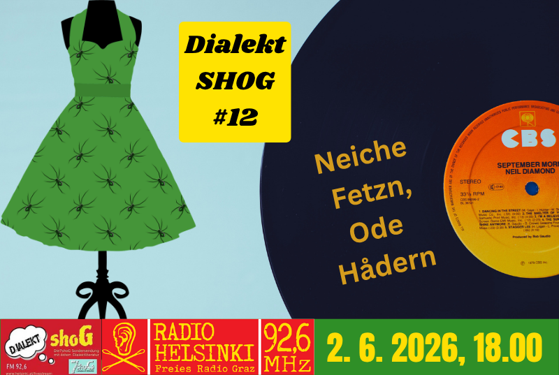 In der der 12. DialektSHOG-Ausgabe stellen wir wieder den neuen Morgenschtean vor. Diesmal dreht sich alles um „oide Hådern“ und „neiche Fetzn“, aber auch einen Ausflug nach Vorarlberg unternehmen wir. Klar, dass wir da auch in die Oidn Hådern vom Bilgeri hineinhören – und auch Kuno Kosmos wird eine Neuinterpretation des klassischen Eagles-Hit versuchen!
