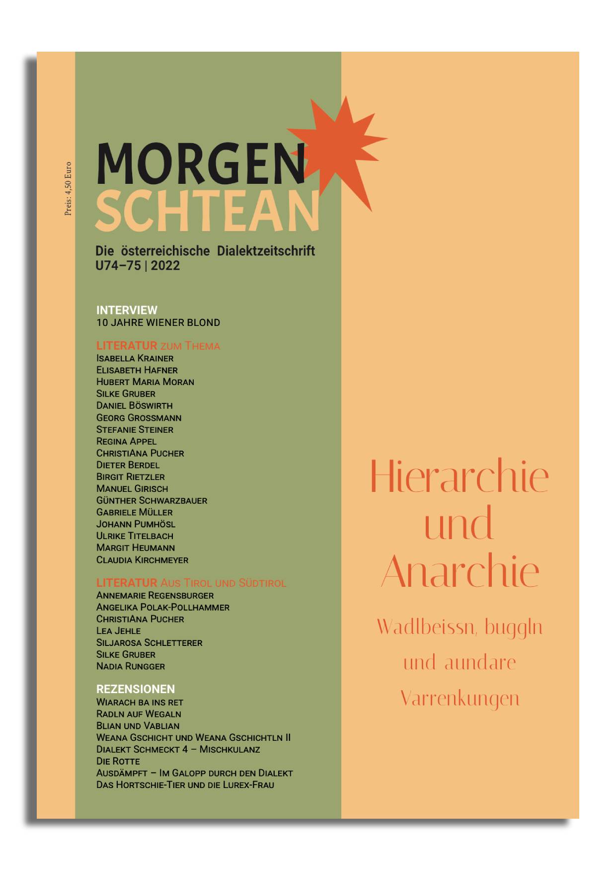 Dialektliteratur zum Thema: „Wadlbeissn, buggln und aundare Varrenkungen„ mit Texten von: Regina Appel, Dieter Berdel, Daniel Böswirth, Manuel Girisch, Georg Großmann, Silke Gruber, Elisabeth Hafner, Margit Heumann, Claudia Kirchmeyer, Isabella Krainer, Hubert Maria Moran, Gabriele Müller, ChristiAna Pucher, Johann Pumhösl, Birgit Rietzler, Günther Schwarzbauer, Stefanie Steiner, Ulrike Titelbach
